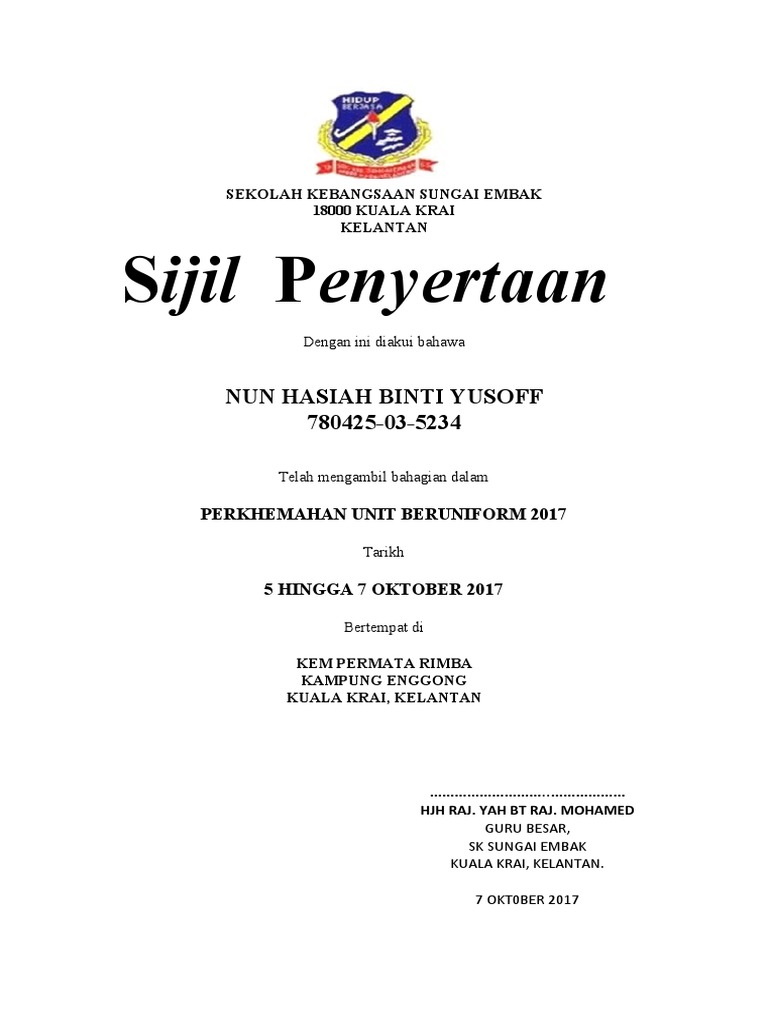 Sijil Penyertaan Perkhemahan Unit Beruniform Skse Pdf